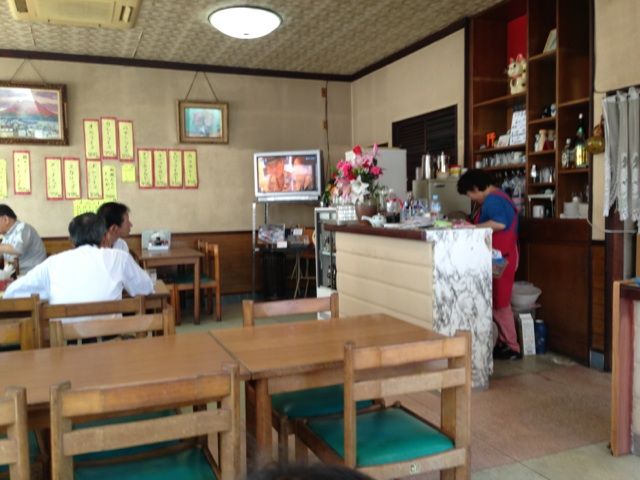 店内こんな感じ。子ども用のいすが用意されているのは、客層とおかみさんの人柄を表わす。