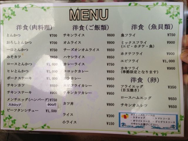 老舗洋食屋のメニューである。