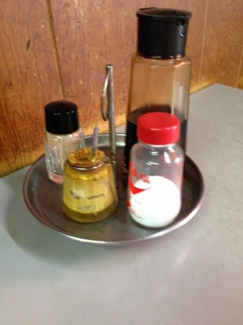 テーブルの上はシンプルである。からしがあるのは嬉しい。