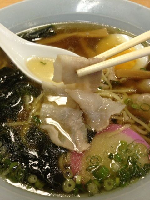 具はわかめ、シナチク、ゆで卵半身、かまぼこ、豚バラ。