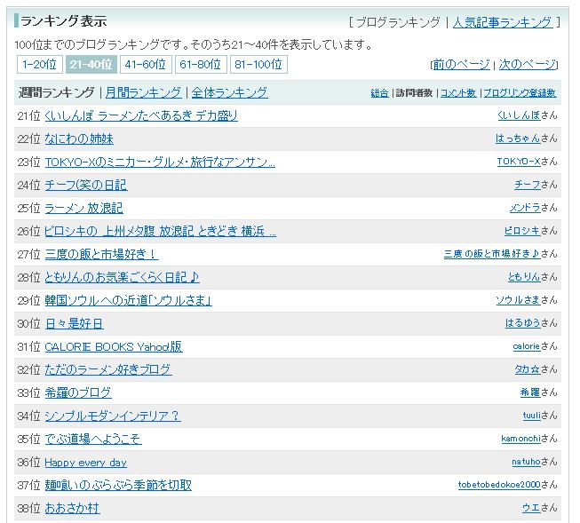 おっと水曜日に「俺、今が絶好調!ブログ更新のピーク!」と書いたのだが、本当にピークだったらしく、Yahoo!のブログランキングに入っていた。
