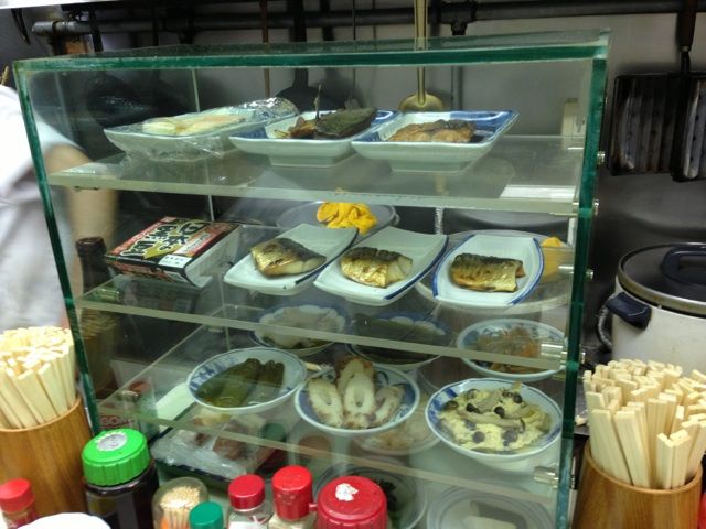 お総菜は品数も多いです。一皿出ると親父さんが新しく作って出してくれます。