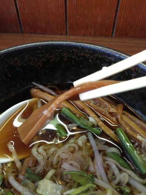 煮詰められられたシナチク。やはり昭和な感じがします。スープは醤油が強く、出汁はあまり感じられない。麺はいわゆる市販品。う~ん!?やっぱり…