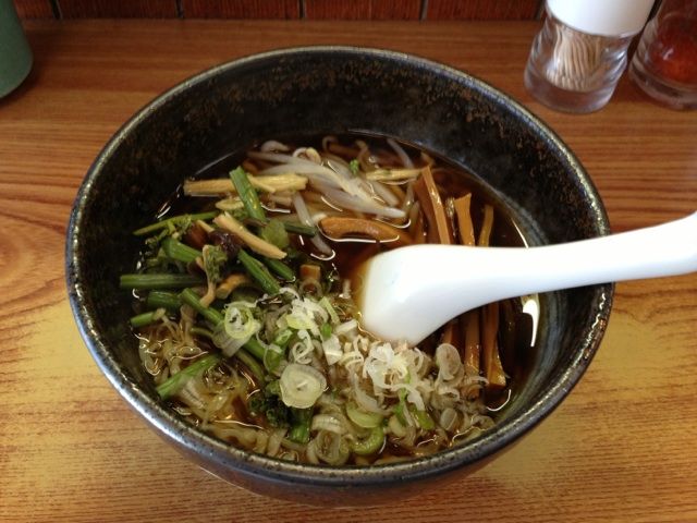 っで、これがそのラーメン。山菜うどんの麺がラーメンになった感じ。チャーシューがないとこれほどさみしく感じるかぁっと思ってしまった。