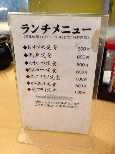 刺身に焼き魚かフライか煮魚がつくCPの良いランチが…