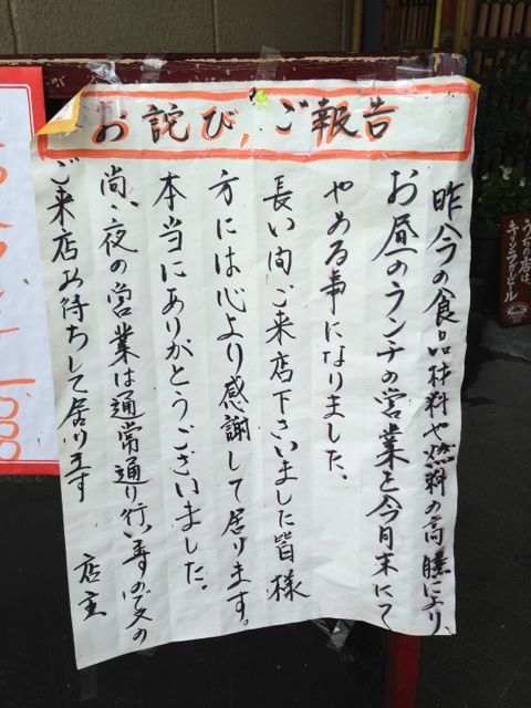 居酒屋営業はこれからも続くんですが、ランチファンは悲しい月末です。