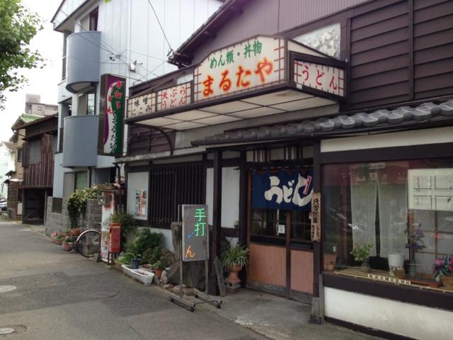 まるたやさん。手打ちうどんの電光掲示板は時代を感じさせる。すでに「手打ん」としか表示されてないし…