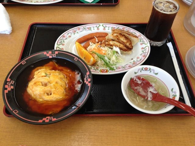 料理はこんな感じ。あんかけなので意外と朝っぱらから入る天津丼。
