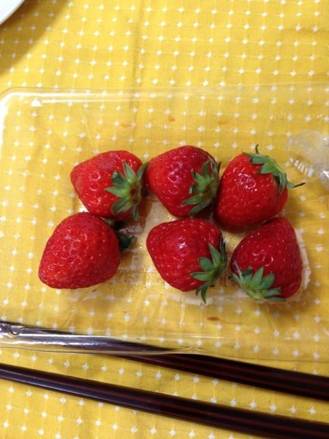 パイナップルを二日ほど常温で保存したら発酵したため、今回も負け…いちごはまあ美味しかったので勝ち♪
