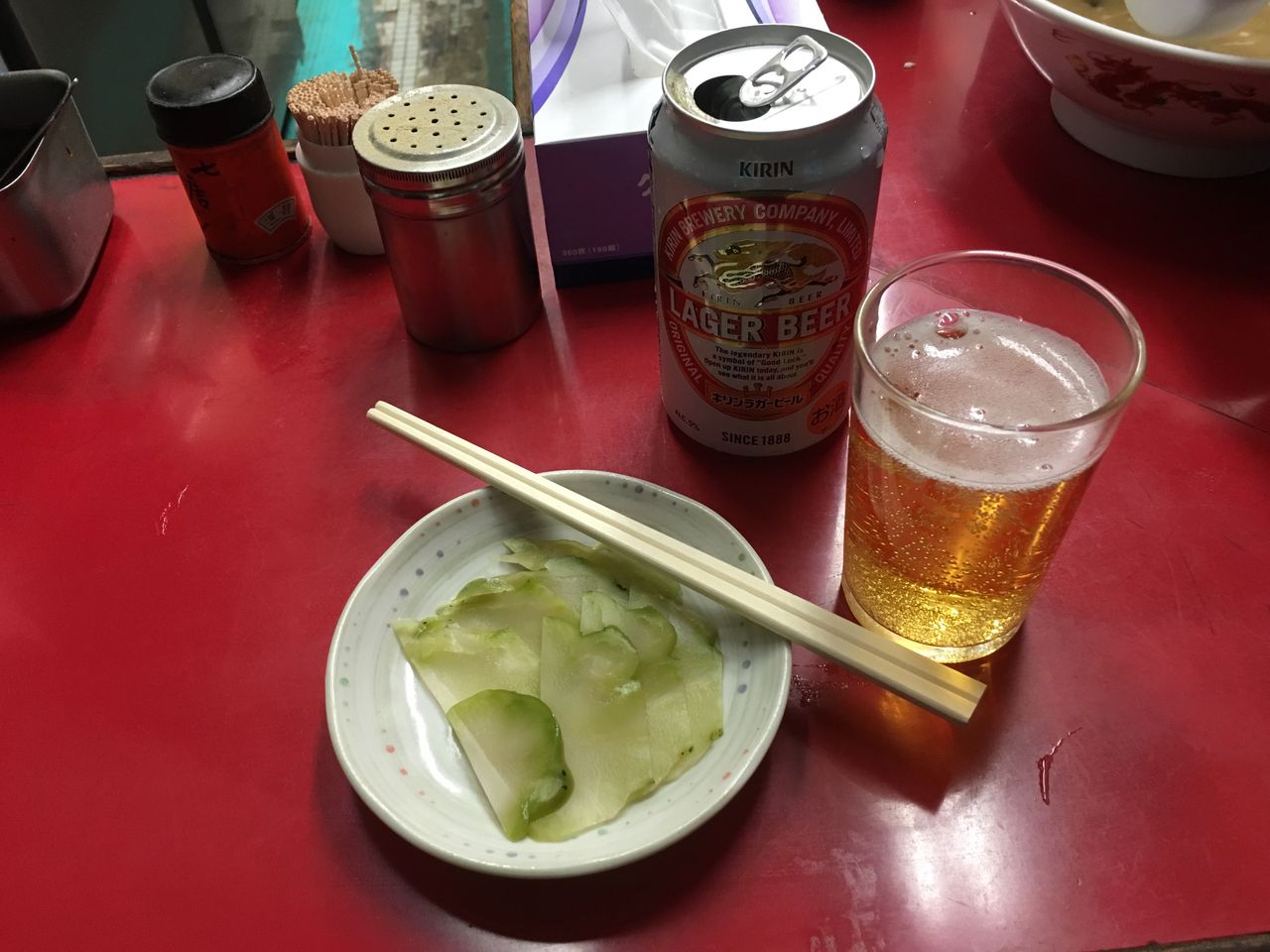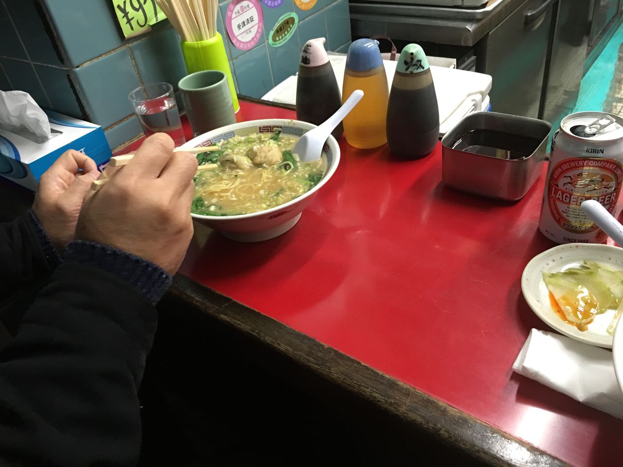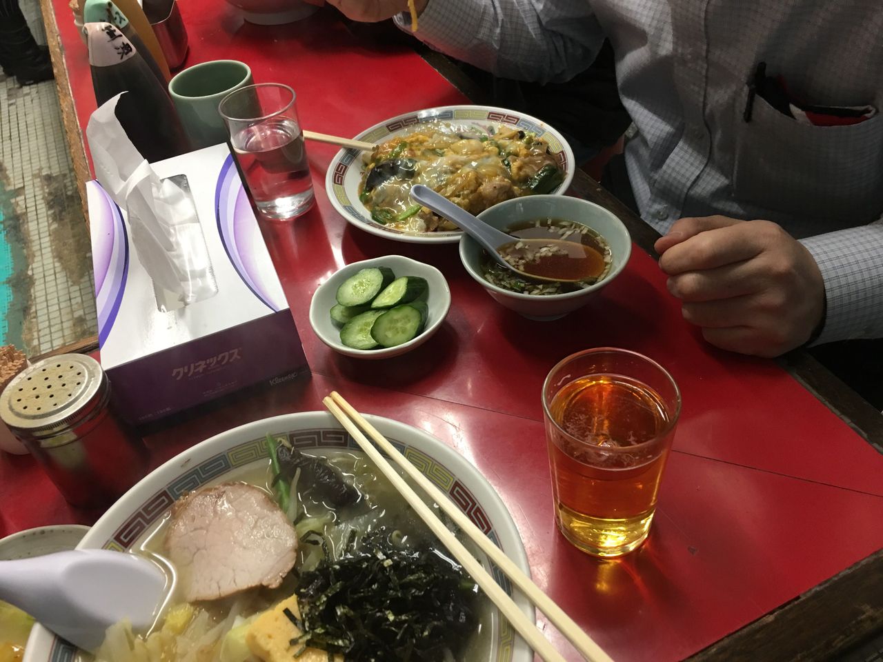 市場で五目そば、ザーサイ@やじ満(築地場内市場)