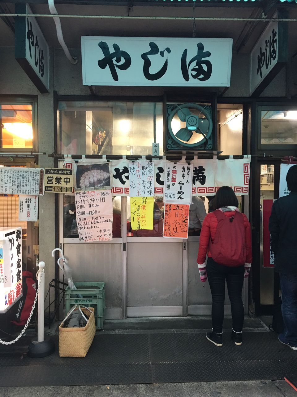 前記のセンリ軒で「新米人事マンの立ち飲みblog」のとむさんとお会いし、連れ立ってやじ満さんに並びます。