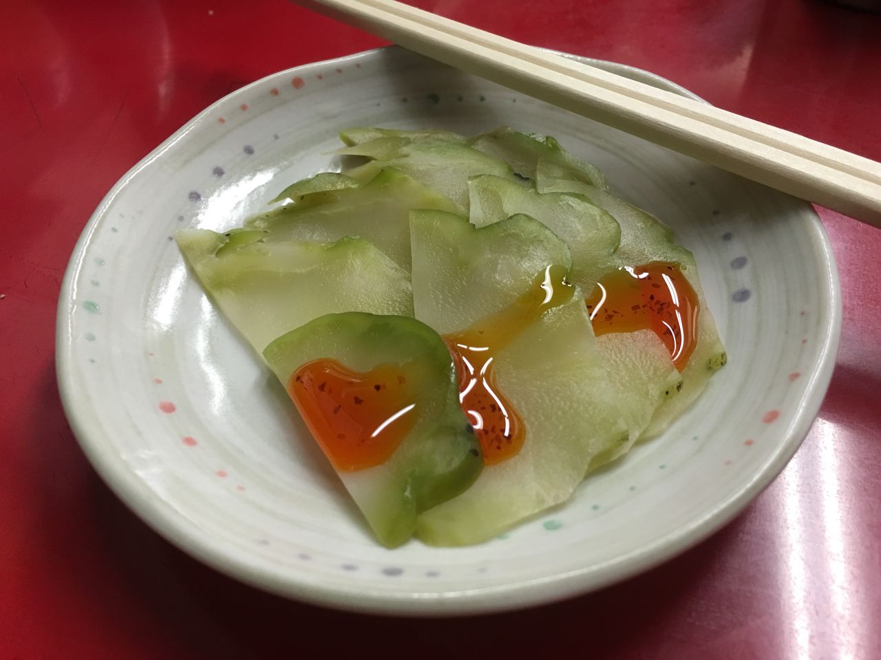「楽食備忘録」のそうさんのエントリーで是非試したいと思ったラー油を垂らしていただきます。