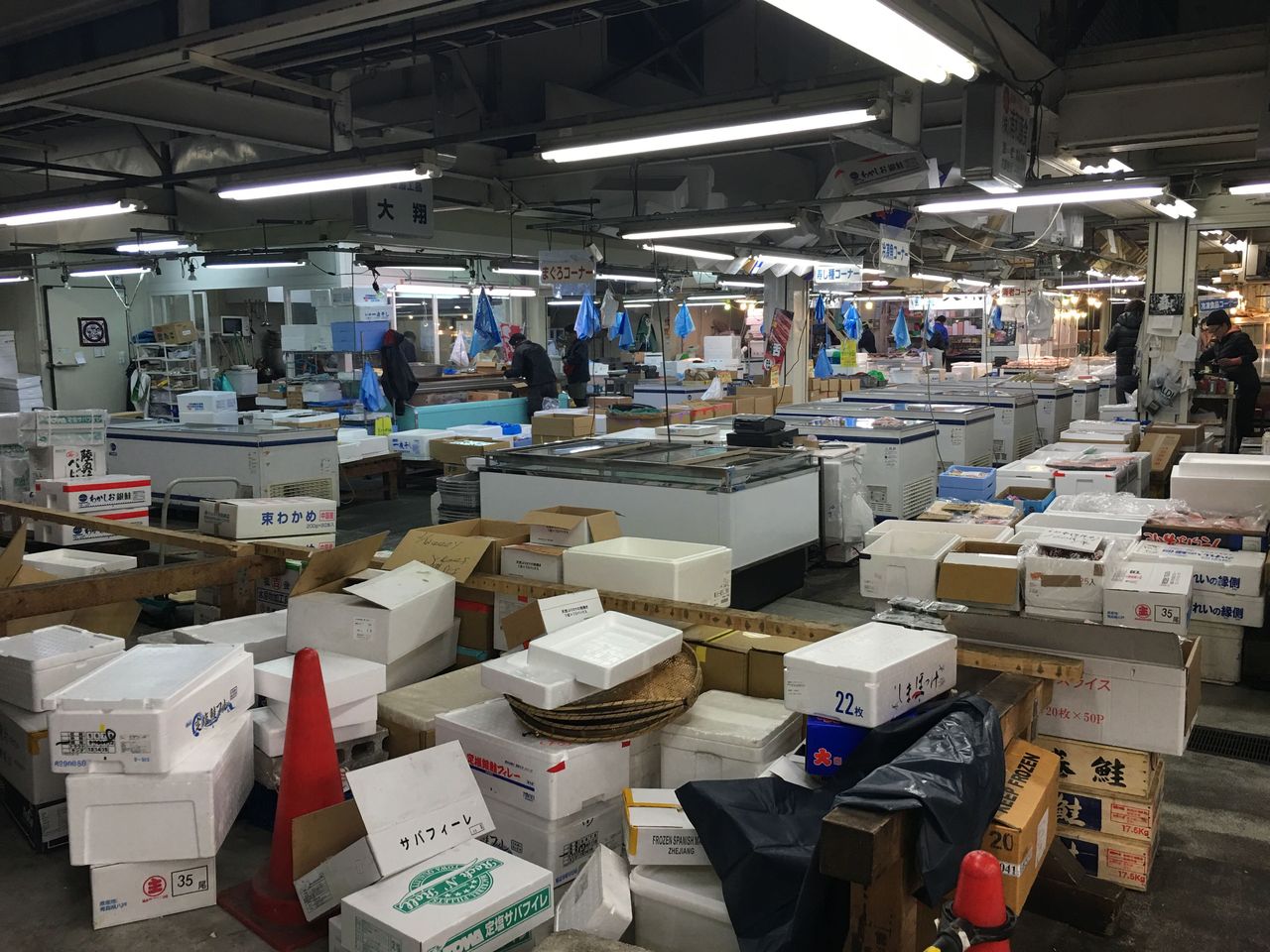 魚はまだ競り場から届いていない様子。
