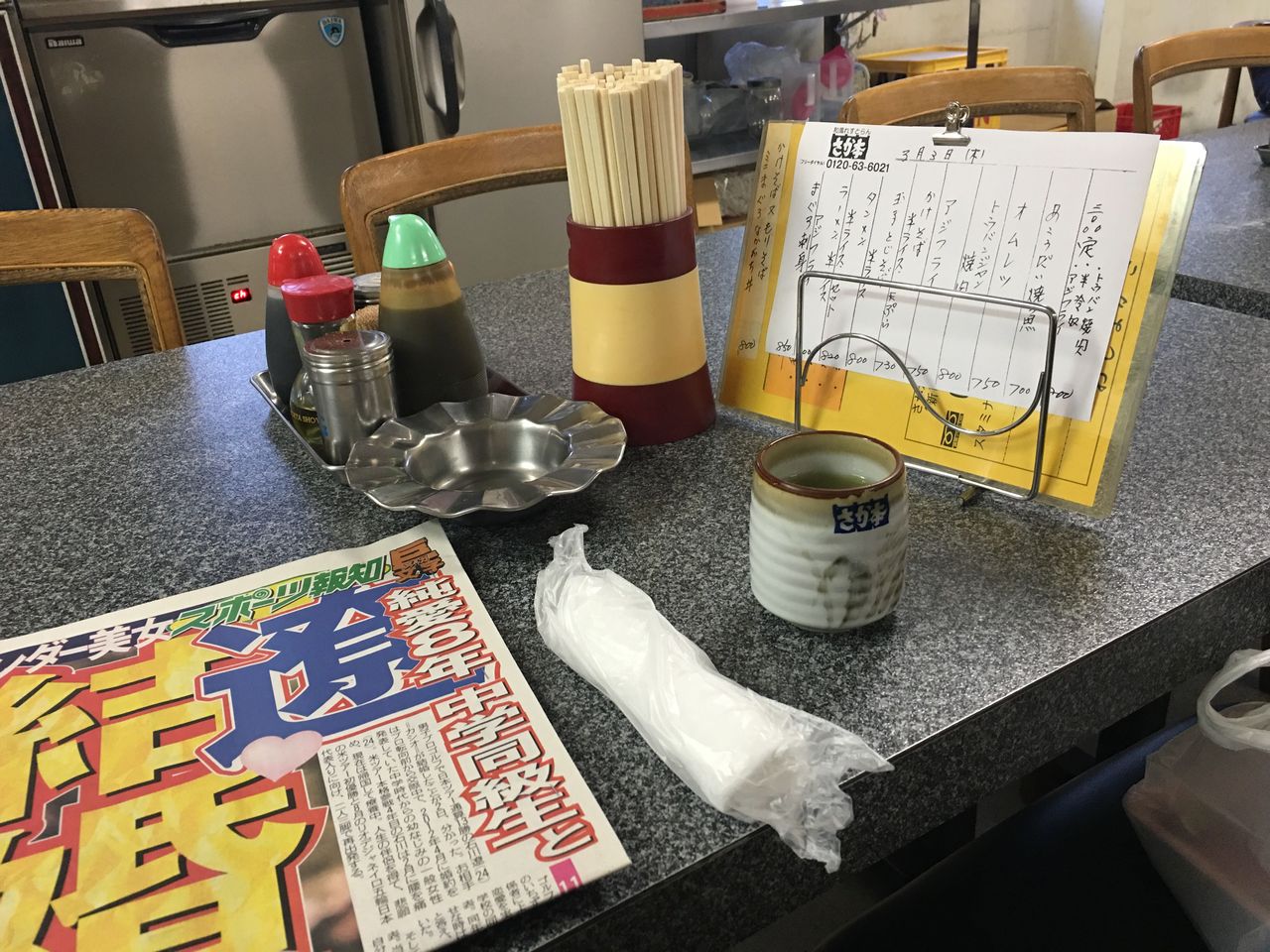 新聞を読む時間も一服する時間もありませんが、やっぱりスポーツ新聞と灰皿はマストアイテムです。