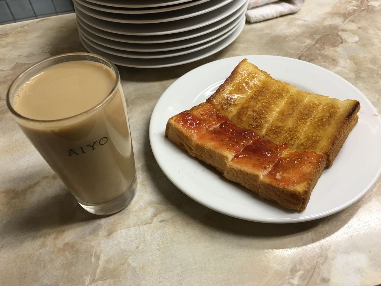 市場でトースト、ミルクコーヒー@愛養(築地場内市場)