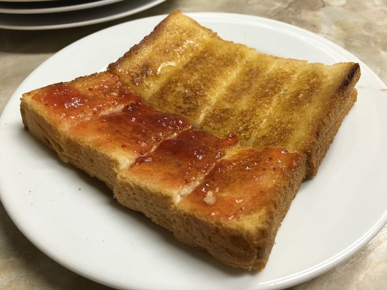 ミルクコーヒーで喉を潤しているとトーストが提供されます。