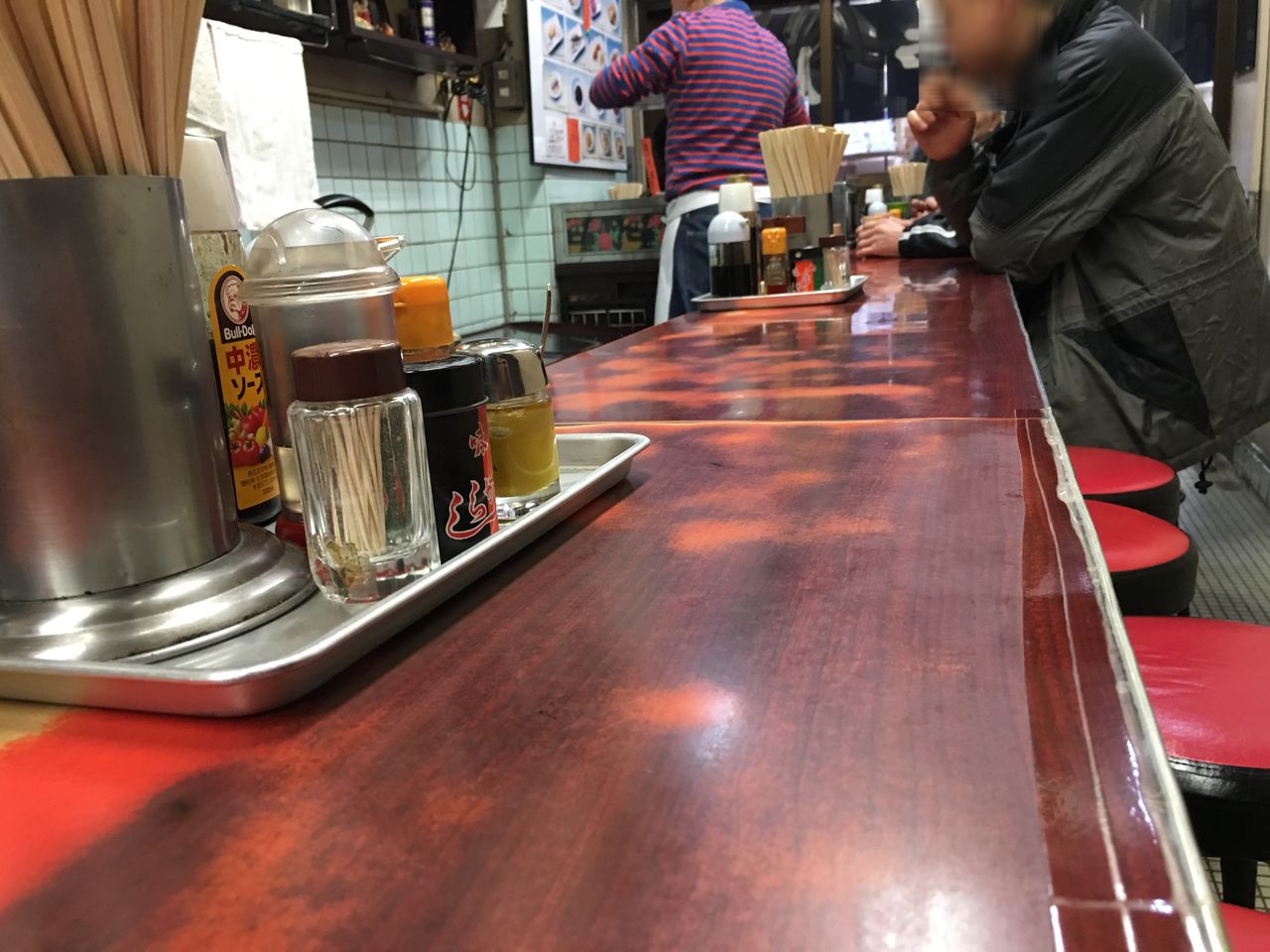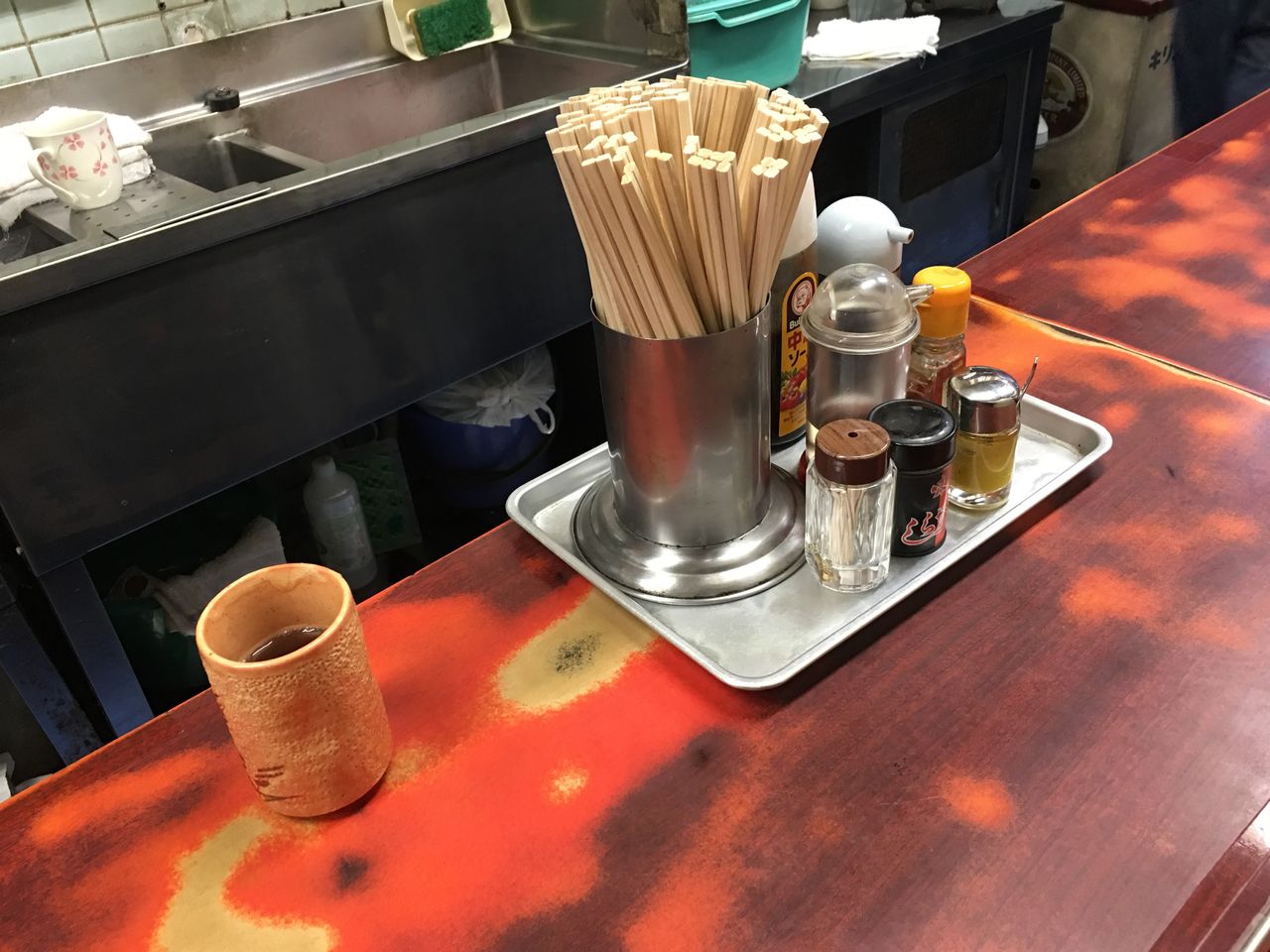 基本調味料がカウンターにたくさんあるのはいい食堂の証だと私は思っている。