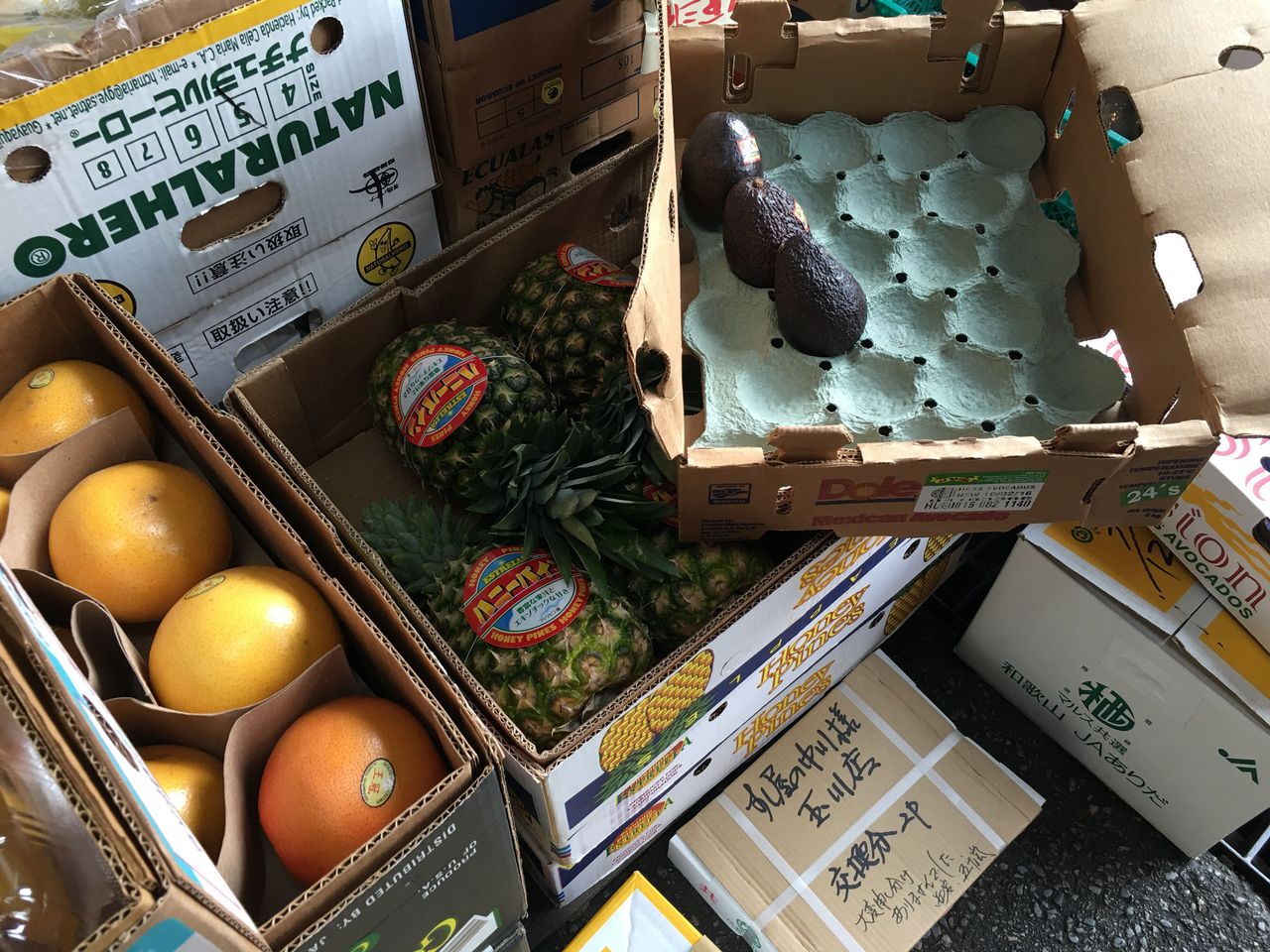 市場のバナナ、パイナップル、はまさき@西岩(築地場内市場)