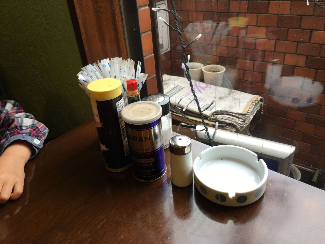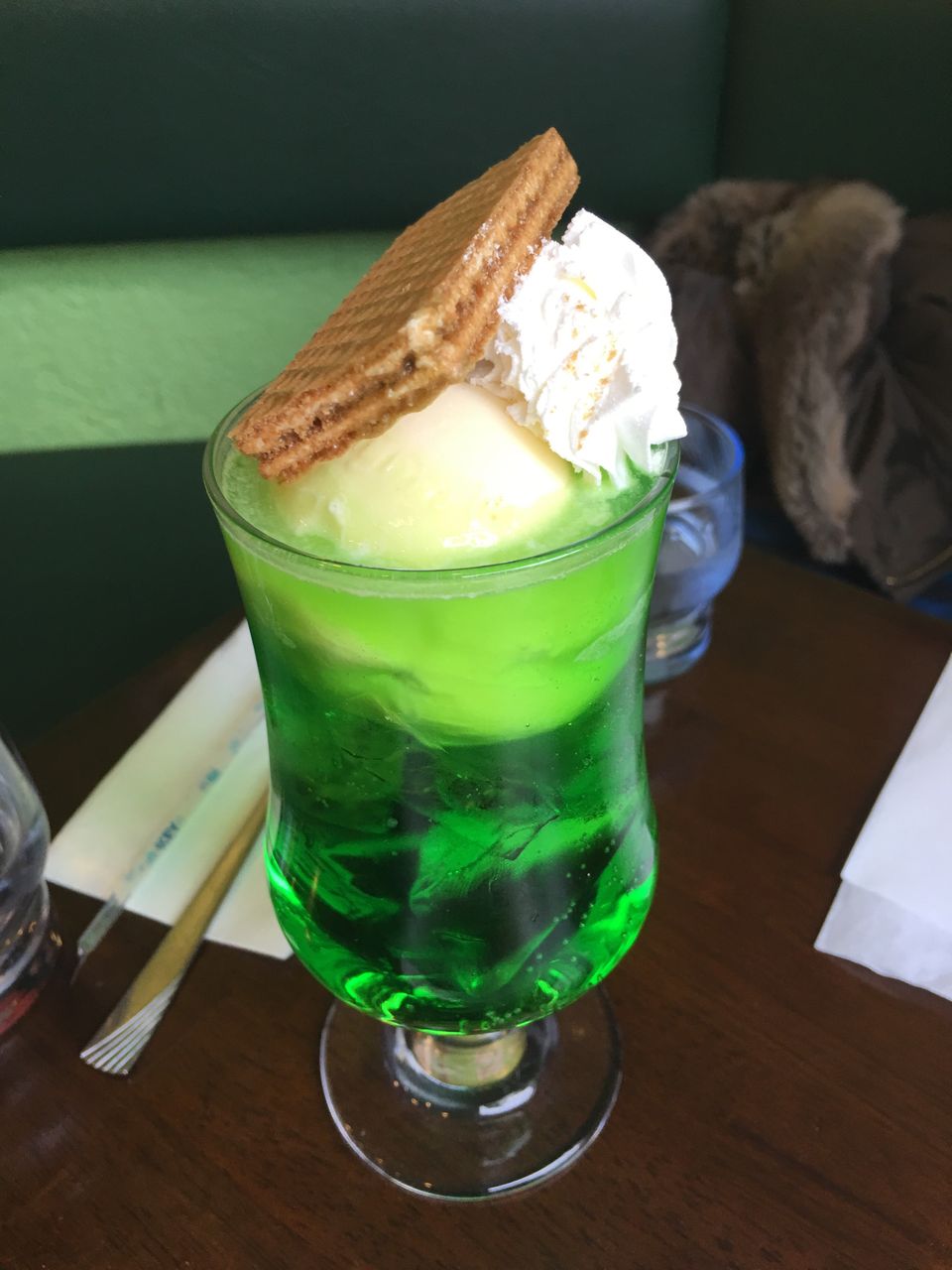 市場でミート&ナポリタンハーフ、和風スパゲッティー、クリームソーダ@フォーシーズン(築地場外市場)