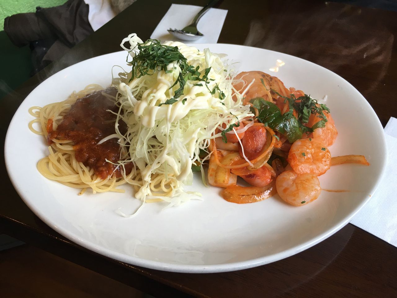 奥さんのチョイスはミート&ナポリタンハーフスパゲッティー。