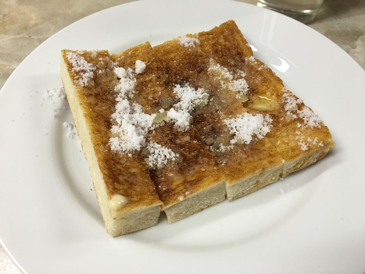 今時トーストに砂糖をまぶすってのも珍しいのかもしれません。