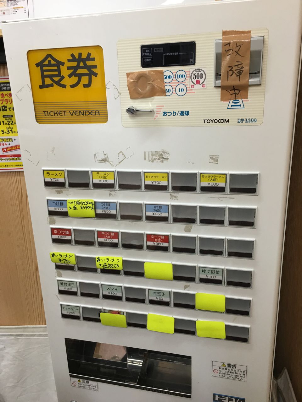 食券機はご機嫌斜めなようで、着席する前にご主人に注文とお支払します。