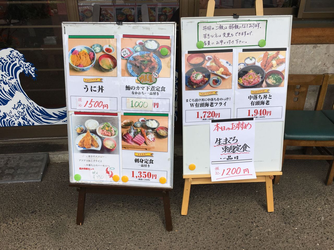 海鮮丼にラーメンにバイキングのお店があります。