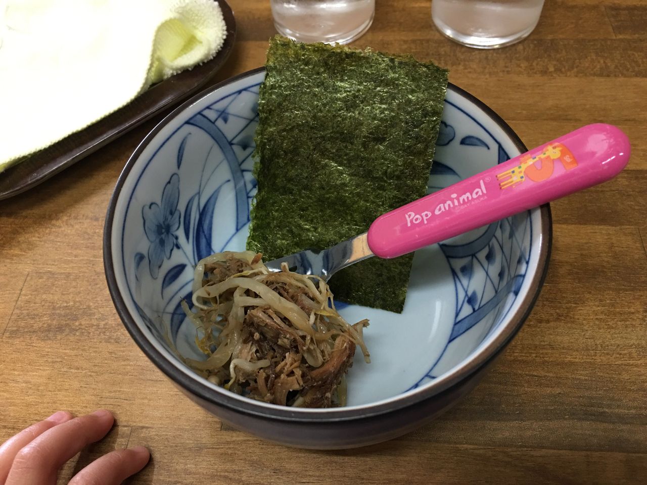 4歳児連れでラーメンを一杯注文すると、子供用に取り皿とフォークを出してくれます。