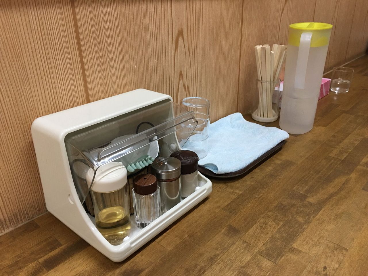 カウンターには基本調味料たくさん。いいお店の証拠ですね。