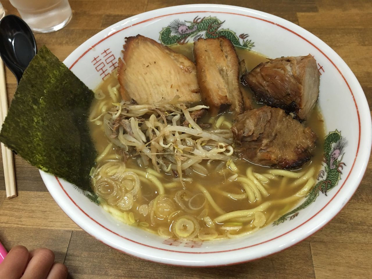 高い高いカウンターからラーメンを取るのはちょっと緊張してしまいますね。