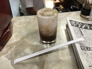 アイスミルクコーヒーとスポーツ新聞でセッティング完了です。