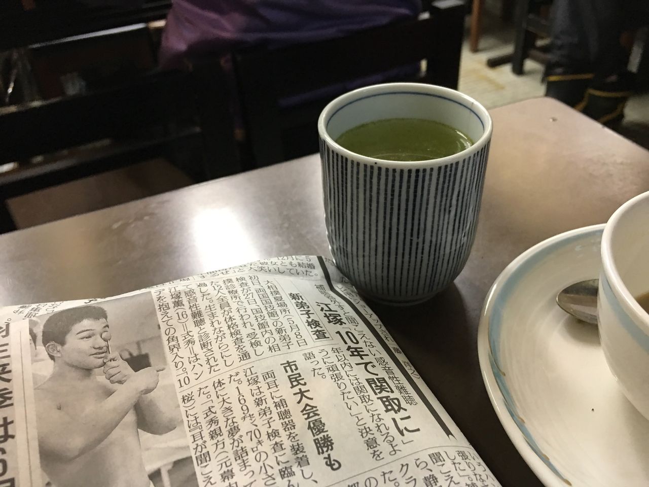 ミルクコーヒーを飲み終わる頃にはお茶が配膳されます。