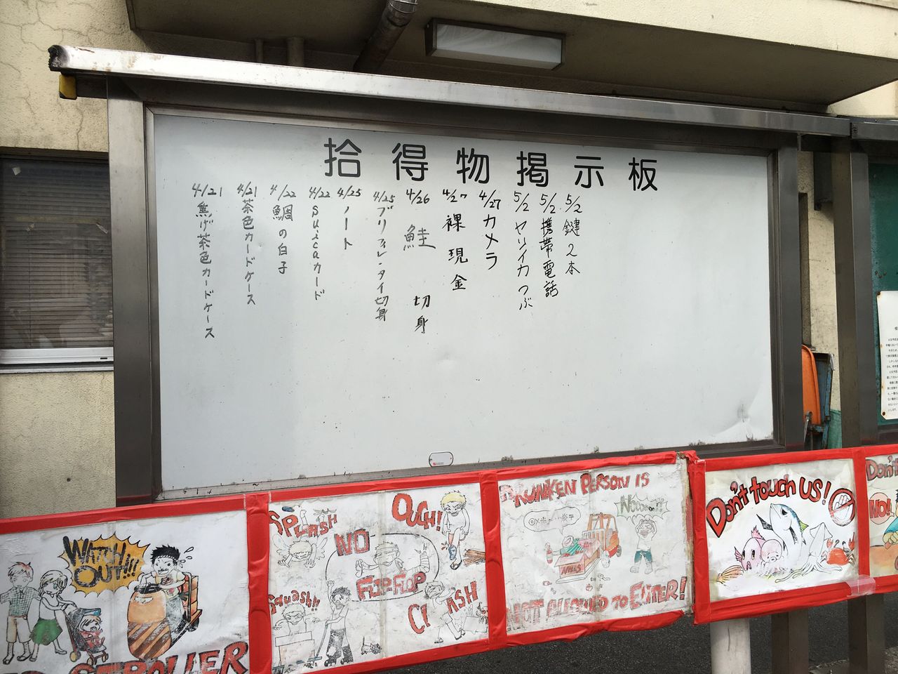 とりあえず取得物掲示板だけ写真を撮らせてくださいと一枚とらせていただき、築地場内市場を後にします!?
