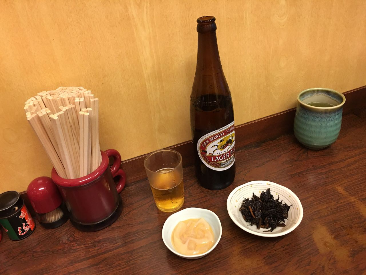 付け出しは塩辛、ひじきは奥さんの定食の小鉢をいただきました。