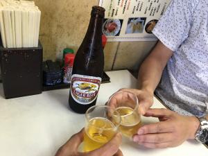 後ろにいたご夫婦に「相席でよかったら」とお声はかけたのですが、「店のやり方ってものがあるからね。」っと諭され、おっさん二人の罰当たりな朝酒会が開宴いたしました。