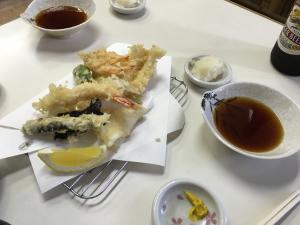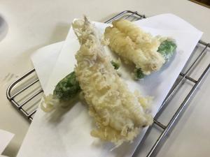 クルマエビ、芝エビ、イカ、稚鮎、アナゴ、海苔、シシトウ。