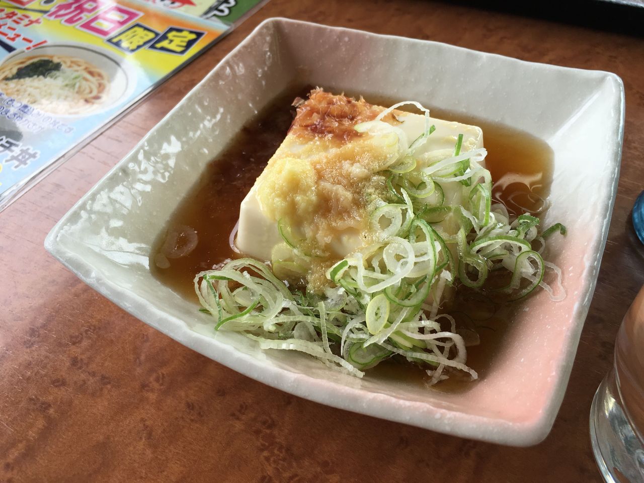 温かい汁にぐずぐずになった天かすがプラスされ、タヌキ豆腐完成。