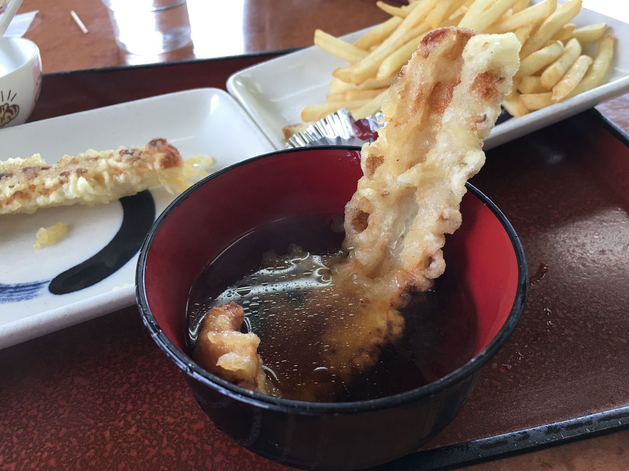 お姉さんに「竹輪天ぷらに出汁かけて持ってきて!」っと言うと、「汁をつければいいですか?」っと聞き返され、「うん、それでいいや…。」っと答える私…。