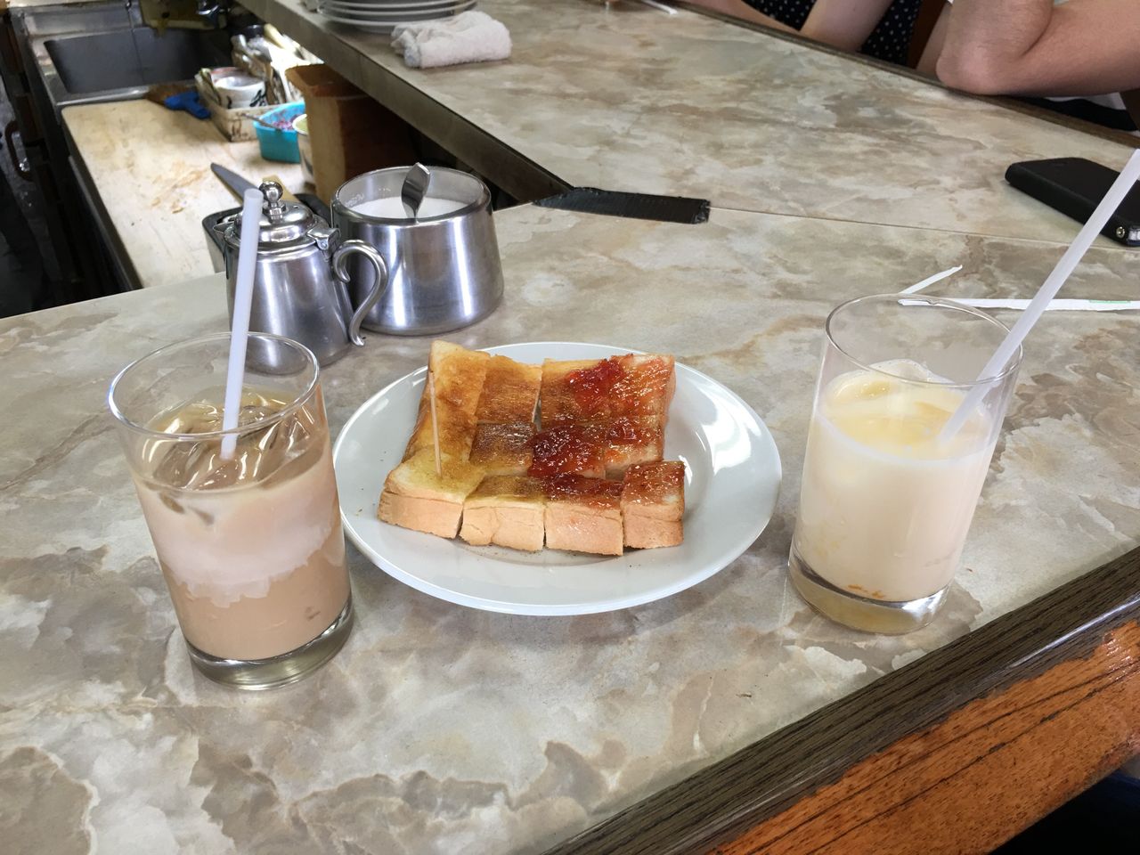 市場でトースト (大岩バージョン)、アイスミルクセーキ、アイスミルクコーヒー@愛養(築地場内市場)
