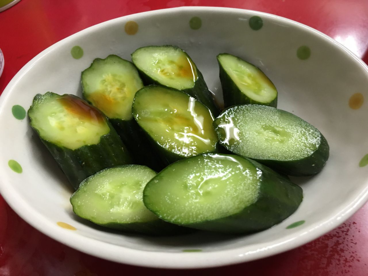 きゅうりにはちょいと醤油で薄化粧していただきました。
