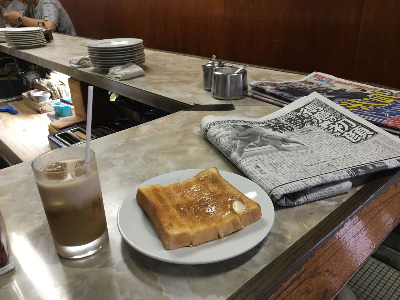 魔法使いさんとお話しながら、スポーツ新聞に目を通し、トーストをつまみつつ、アイスミルクコーヒーを啜る。