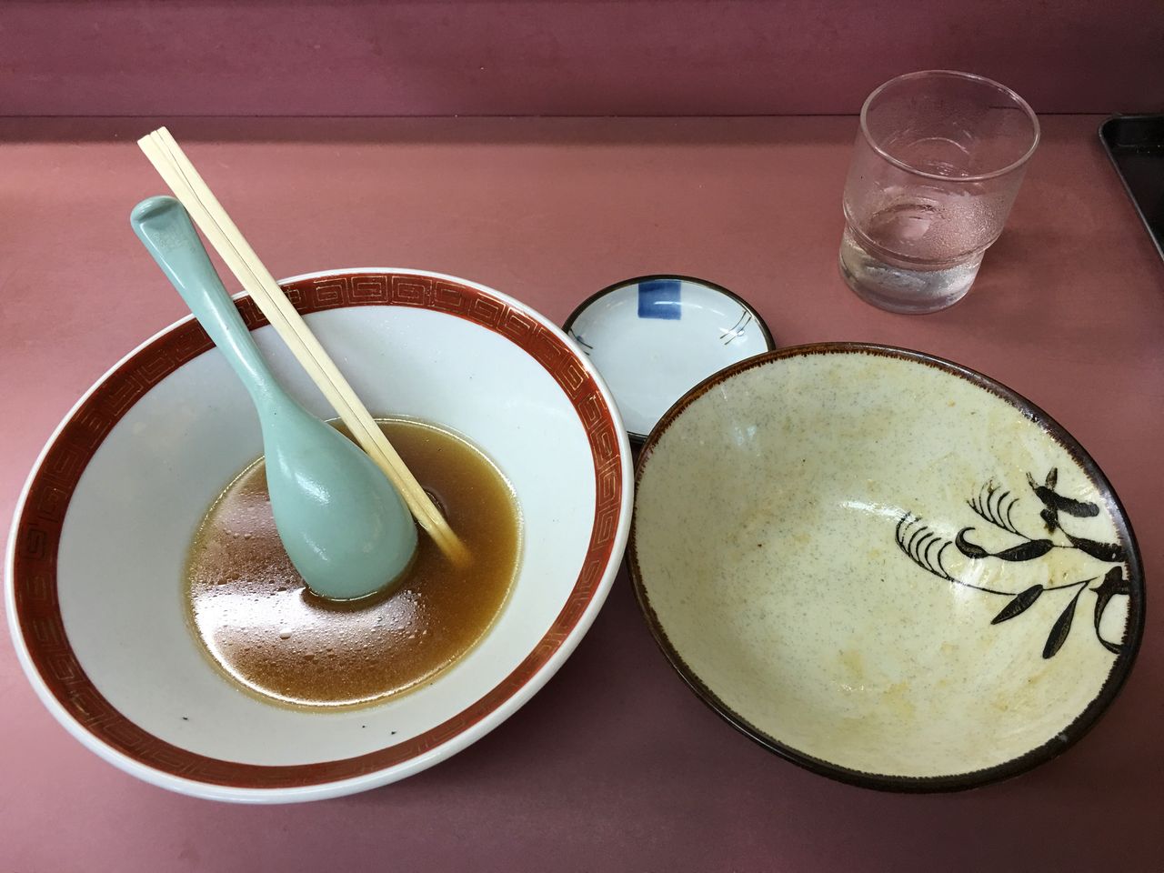 いつもこちらのラーメンのスープは飲み干すんですが、濃い目の味付けの卵丼のせいなのか、店のぶれのせいなのか、暑くなってきたせいなのか分かりませんが、飲み干せませんでした。