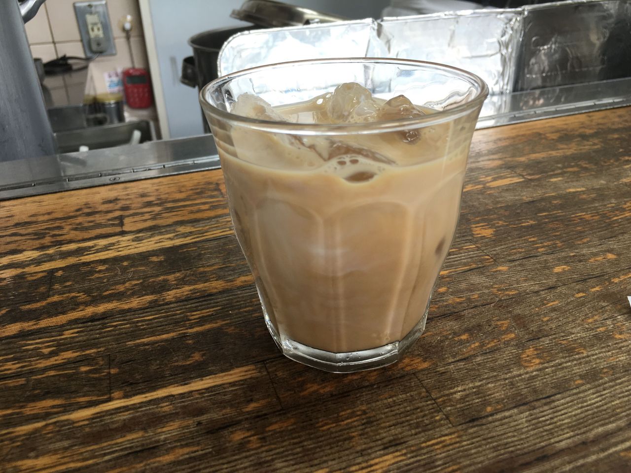 アイスミルクコーヒーの混ざり方を見ると、出てきてから結構時間が経っているようです…。