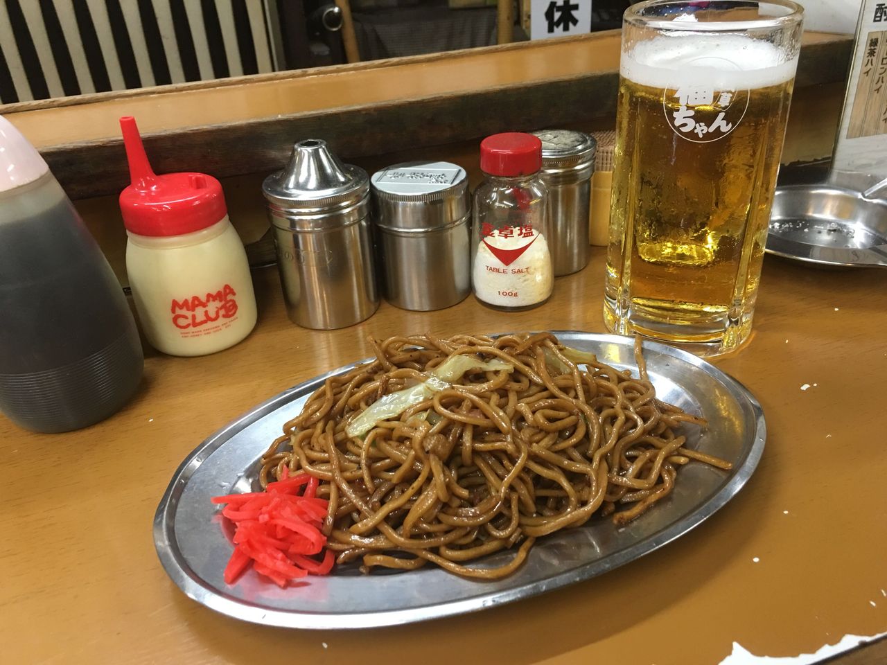 お上りさんとしては焼きそばにビールでご機嫌を伺います。