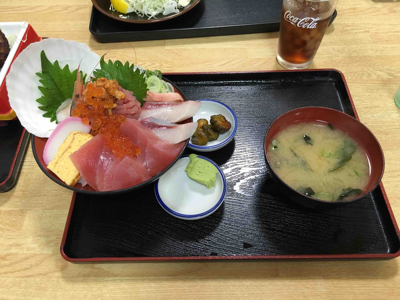 市場で海鮮丼、サービスセット、お子様ランチ@高はし(大宮総合食品地方卸売市場、埼玉県さいたま市北区)