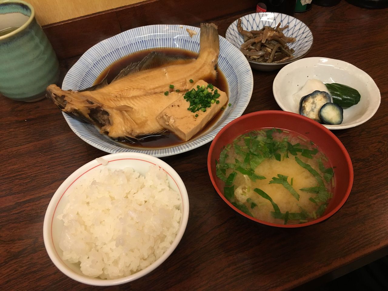 「迷ったときは鯖かカレイ」と監督様の御教えに従いナコガレイ煮付け定食にしてみました。