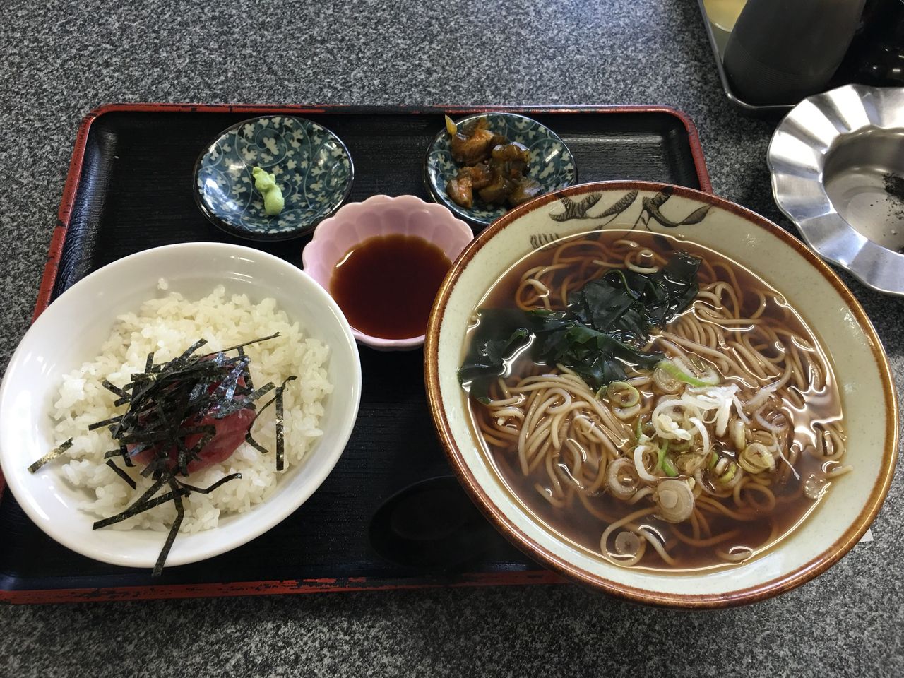 そして迷うとお願いする、かけそば、ミニまぐろなかおち丼。