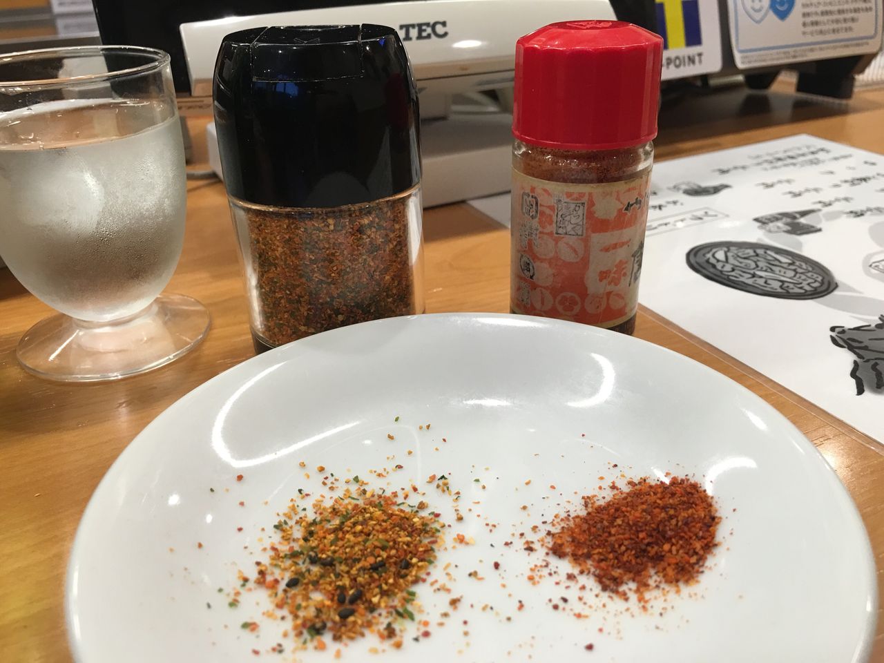 ちなみに牛すいと共に出された一味とデフォルトの七味。