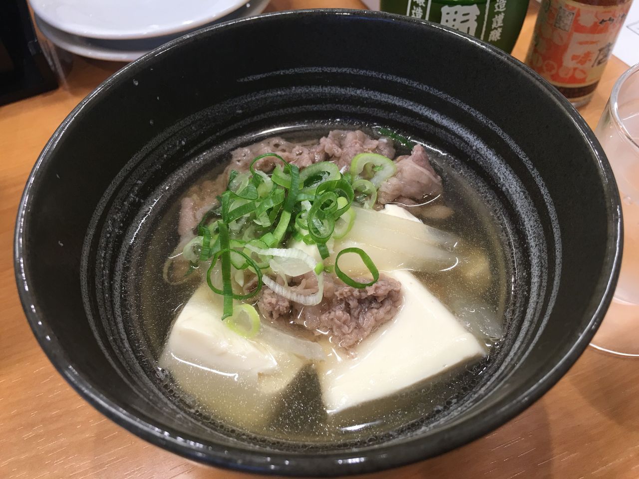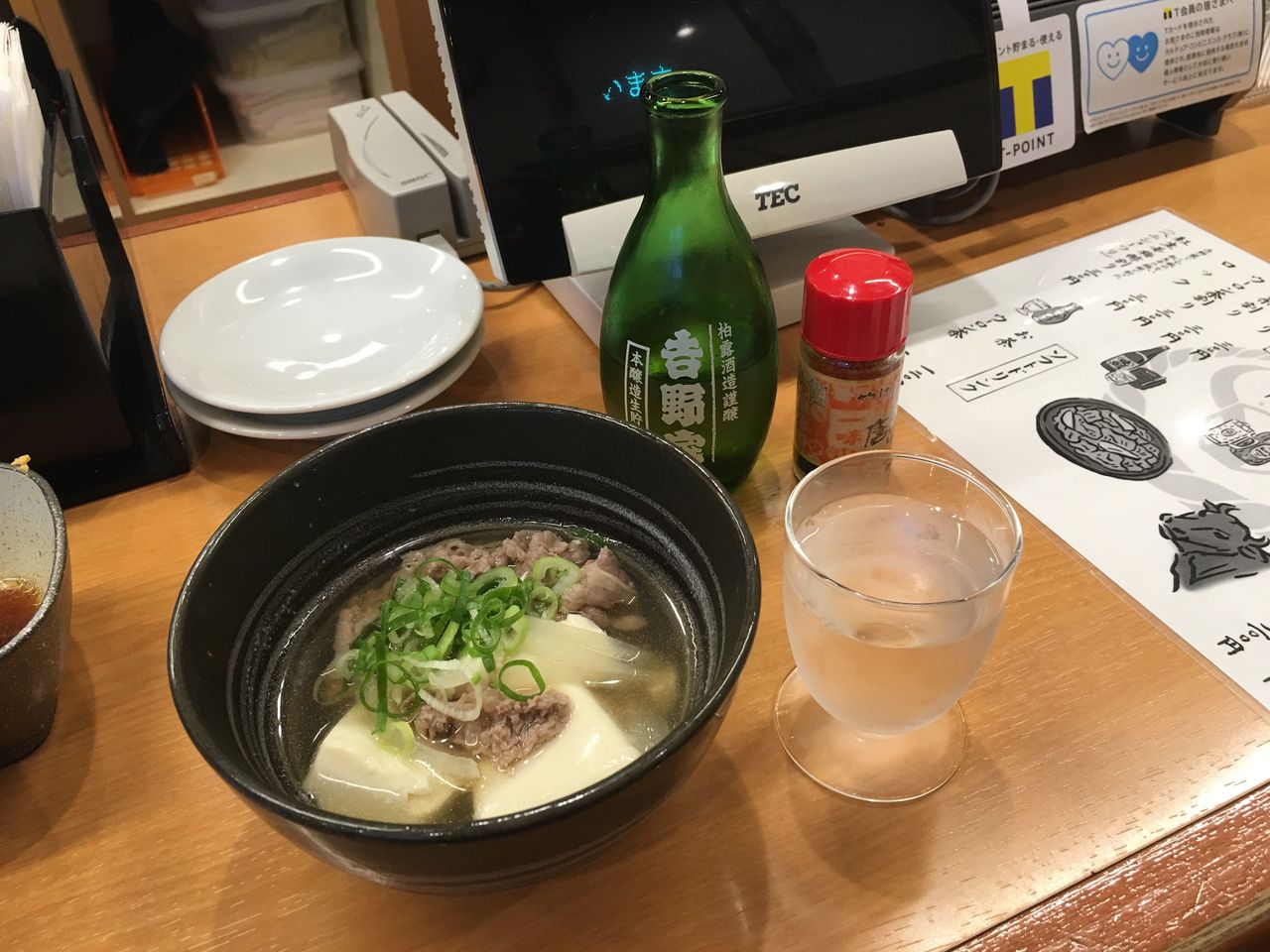 牛すいに冷や酒は野暮ざんすよ!って思いながらも日本酒をお願いしてしまう私。