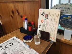 スポーツ新聞に灰皿があるノスタルジックな街の蕎麦屋です。